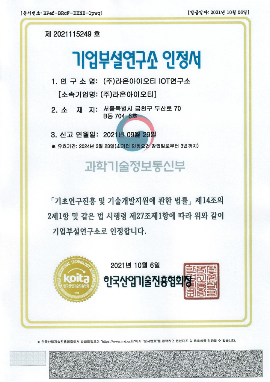 라온 : '즐거운' + 아이오티 : '사물인터넷'
