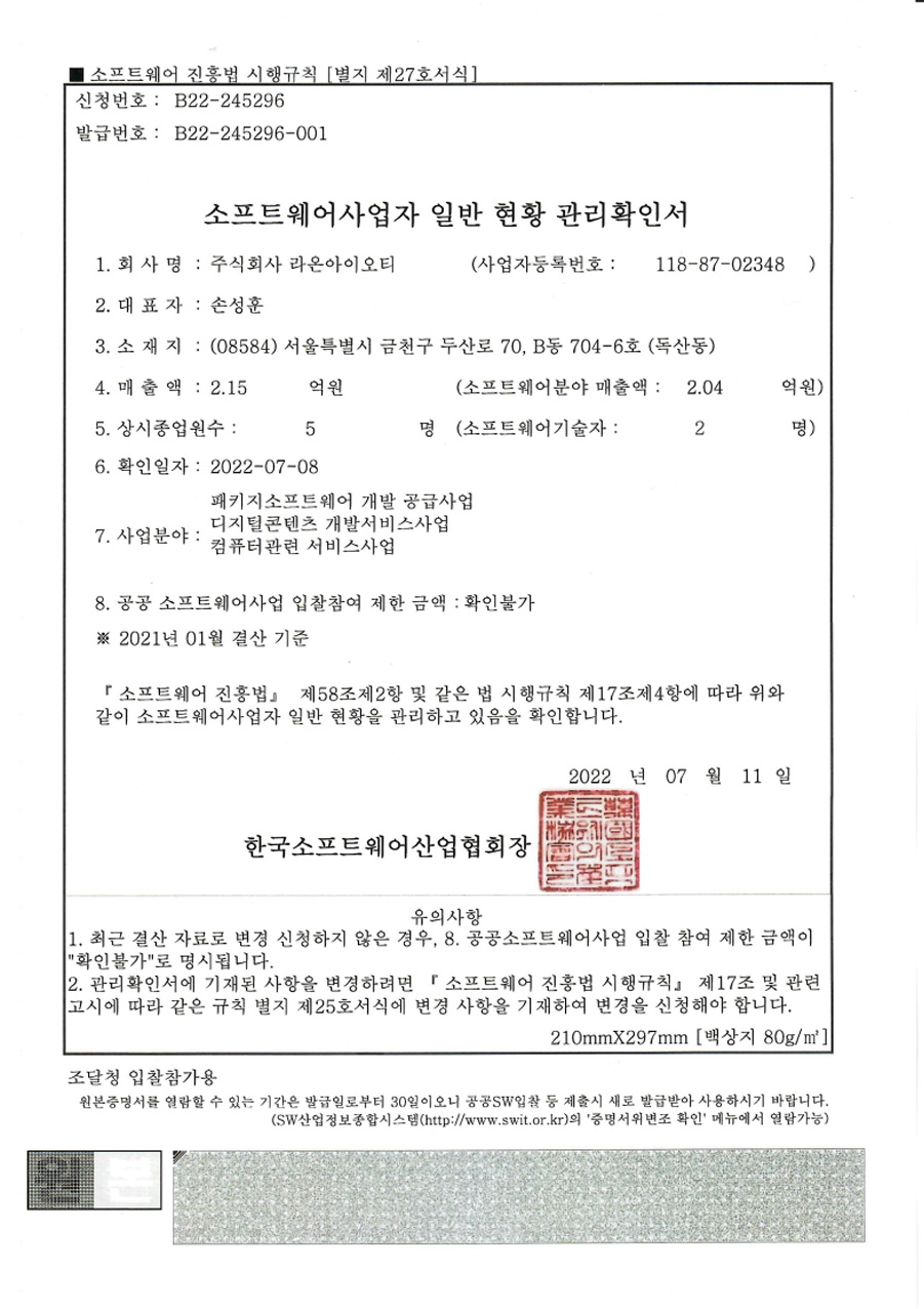 응용 소프트웨어 개발 및 공급업 인증